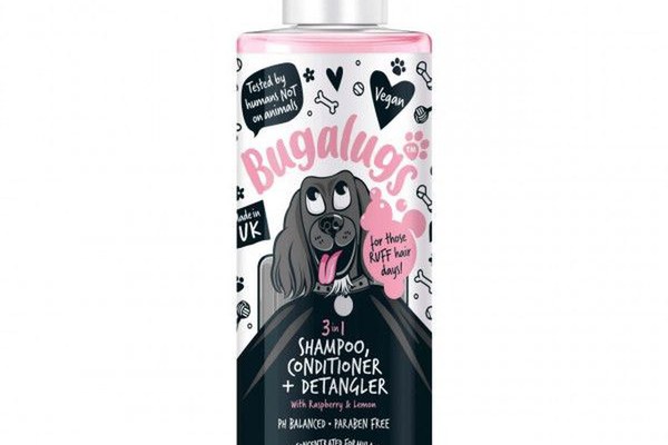 Sampon Bugalugs Raspberry 3 in 1, 250 ml este un sampon bland pentru caini, cu pH echilibrat si un parfum de zmeura si lamaie, care curata, hidrateaza si descalceste blanita.\n\n\n\n\n3 in 1 Sampon + balsam + efect descalcire\nAroma de zmeura si lamaie\nFormula concentrata\npH echilibrat\nFara parabeni\nVegan, cruelty free\n\nPerfect pentru indepartarea mirosurilor de caine, samponul Bugalugs curata in profunzime, fiind in acelasi timp bland cu pielea, lasand blana curata, moale si cu miros irezistibil!\nSamponul este imbogatit cu imbogatit cu ulei de migdale si extract de merisoare care hidrateaza pielea.\nAcest lucru a facut din acest produs de ingrijire a cainilor un sampon preferat in saloanele si casele din intreaga lume!\nPotrivit pentru catelusi peste 8 saptamani. Potrivit pentru toate tipurile de blana.