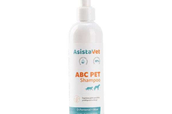 Sampon Hidratant si Hipoalergenic ABC PET, AsistaVet, 250 ml - produs excelent recomandat pentru căței, pisici și câini cu piele sensibilă, predispuși la reacții și iritații cutanate. Curăță și îngrijește ușor, lăsând pielea și părul bine hidratate.\nSubstanțele special selectate reconstruiesc bariera de lipide, creând o peliculă care protejează pielea împotriva pierderii excesive de apă.