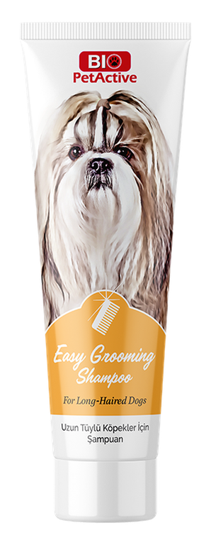 Samponul Bio PetActive Easy Grooming ofera o ingrijire usoara pentru cainii cu blana lunga prin descalcirea si netezirea blanitei. • Ajuta la hidratarea pielii si la curațarea in profunzime a blanii. • D-Pantenolul din formula sa ajuta la intarirea blanii si reduce deterioarea ei, mentinand-o moale si stralucitoare. • Ofera volum, stralucire si hidrateaza blana animalului de companie.\nCantitate neta: 250mlStarea de depozitare si perioada de valabilitate:• Depozitati la temperatura camerei.• Evitati expunerea directa la soare.• Protejati de inghet.• Perioada de valabilitate este de 2 ani de la data fabricatiei.