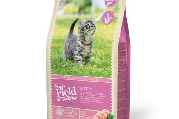 Formula Completa pentru pisiciute.\n\nPui Proaspat, Legume si Fructe.\nCresterea sanatoasa a muschilor si a oaselor, functiilor vitale si imunitate pentru un start de succes in viata.\nFara Grau - Fara Porumb\n\nFormula Sam's Field - FARA GRAU - asigura o viata sanatoasa de nutritie si elimina riscul de intoleranta alimentara si alte reactii adverse.