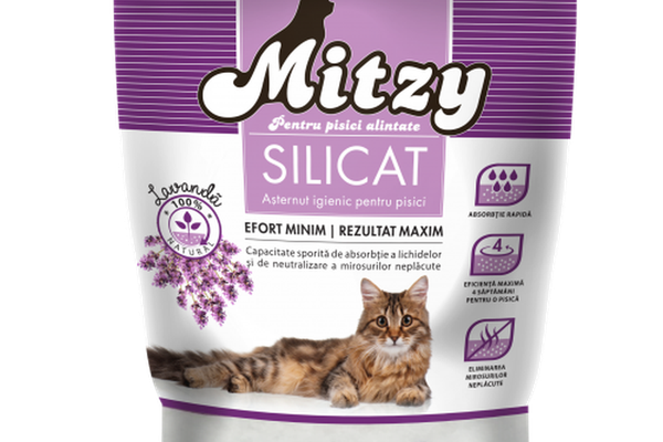 Silicat pentru litiera cu lavanda Mitzy 3.8 L este un asternut igienic pe baza de granule de siliciu pentru pisici cu parfum de lavanda.\n\nContine: cristale naturale de silicat gel (dioxid de siliciu).\n\nCaracteristici si beneficii nisip pentru litiera cu lavanda Mitzy 3.8 L:\n\nAbsoarbe urina neutralizeaza mirosurile\nNu face bulgari\nNu se lipeste pe labute si blana\nParfumat\nNu este toxic\nProdus natural\nSigur pentru animale si mediul inconjurator\nUsor de transportat\n\nA se pastra in ambalajul original, in spatiu ferit de umezeala.\nA nu se arunca in toaleta.