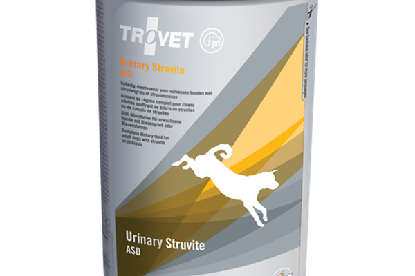 Hrană dietetică completă pentru câini adulți cu tulburări urinare cauzate de struviti\nTrovet urinary Struvite este un aliment dietetic, special formulat pentru a preveni formarea cristalelor de struvit. Struvtii sunt o afecțiune comună, dar bine tratabilă. Trovet urinary Struvite scade pH-ul urinei, prevenind formarea cristalelor de struviti. În combinație cu conținutul scăzut de minerale (magneziu), reapariția este și mai redusă. \nIndicatii:\n\nUrolitiaza cu struviti\nFormarea repetată de struviti\n\nContraindicatii\n\nCatelusi\nGestația și lactația\nCâini care primesc în prezent o doză completă de acidifianți urinari\nUrolitiază cu urați, cistină și oxalat de calciu\nCâini batrani\n\nCaracteristicile produsului\n\nNivelul scăzut de potasiu va ajuta la menținerea pH-ului urinei la niveluri scăzute.\nMagneziul este la un nivel scăzut sigur, asigurând că utilizarea preventivă pe termen lung nu provoacă riscul de hipomagnezemie.\nLimitează absorbția de minerale care duc la formarea struviti.