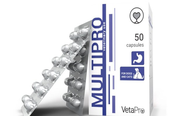 Supliment nutrițional pentru câini și pisici. Păstrează în limite normale funcționarea microflorei intestinale. Menține funcția normală a tractului digestiv.\nSupliment nutrițional pentru câini și pisici, conține probiotice naturale pentru a menține un nivel sănătos de bacterii bune și pentru a menține funcția normală a tractului digestiv.\nEnterococcus faecium înlocuiește bacteriile „rele” eradicate de bacteriile „bune”, care promovează în mod natural niveluri mai ridicate de bacterii antiinflamatorii în sistemul digestiv. Oferă efecte inhibitoare împotriva diferitelor microorganisme enteropatogene. Funcționează pentru a opri și a preveni diareea infecțioasă și diareea indusă de antibiotice. Îmbunătățește echilibrul microflorei la toți câinii și pisicile supuse stresului. Crește dezvoltarea altor bacterii bune în sistemul digestiv.\nBacillus subtilis întărește sistemul imunitar și ajută să lupte împotriva bacteriilor nefavorabile și virușilor. În plus, Bacillus subtilis lucrează sinergic cu Enterococcus faecium. Dacă animalul de companie a urmat un tratament cu antibiotice, a suferit o intervenție chirurgicală sau a fost vaccinat, este posibil să aibă un discomfort la nivel digestiv, să se simtă letargic sau să nu aibă poftă de mâncare. Pentru căței și pisoi cu scaune moi sau pentru animalele de companie după deparazitare, MULTIPRO ar trebui să-i ajute să se recupereze.