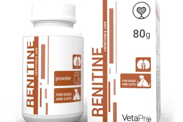 Supliment nutrițional adaptat pentru câini și pisici. Liant de fosfat. Menține condițiile metabolice normale.\nSupliment nutrițional pentru câini și pisici, liant de fosfat util în menținerea condițiilor metabolice normale ale animalelor. Carbonatul de magneziu este un agent de legare a fosfatului. Lianții de fosfat își schimbă anionul în fosfor și devin săruri de fosfat în tractul digestiv, care sunt ejectate de materiile fecale. Comparând eficiența liantului de fosfat, MgCO3 are o eficacitate mai bună (față de CaCO3). Eficacitatea de legare a fosfatului și evitarea creșterii calciului și a calcificărilor ulterioare, fac două avantaje importante ale comprimatelor RENITINEI. Chitosanul este un zahăr obținut prin dezacetilarea cojilor de chitină. Reduce semnificativ uremia și nivelul creatininei serice.