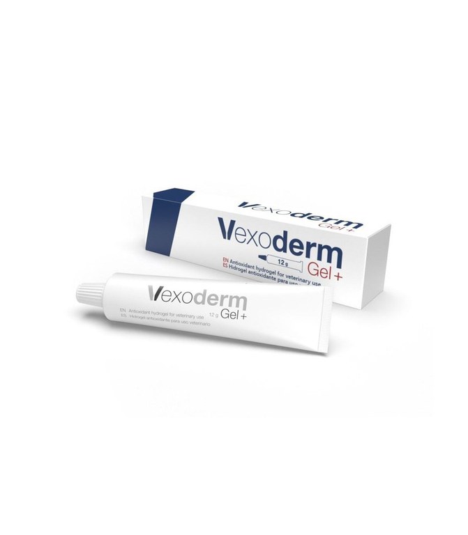 Hidrogel antioxidant de uz veterinar.\nVexoderm Gel+ este un hidrogel sterilizat de uz veterinar pentru piele deteriorata.Are proprietati excelente de hidratare, protectie si reparare.\nRecomandari de utilizare: Vexoderm Gel+ este indicat pentru prevenirea si protectia pielii deteriorate, iritate sau uscate la animale.
