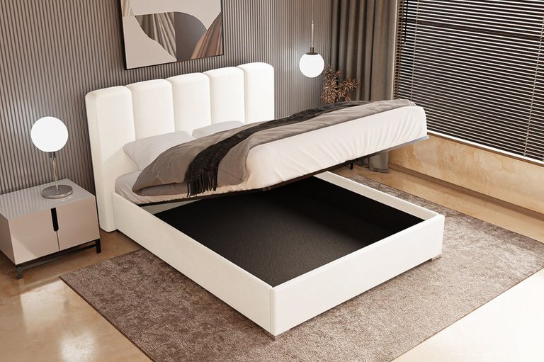 Pat Tapițat Luna, cu somieră rabatabilă și ladă de depozitare