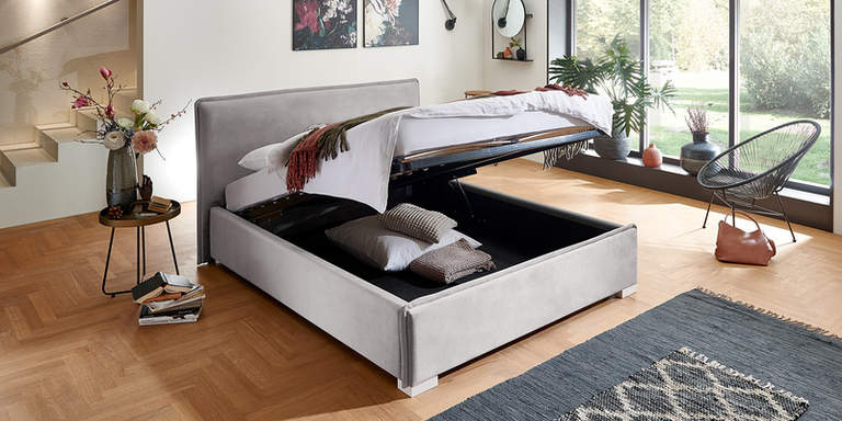 Pat Tapițat Nice, cu somieră rabatabilă și ladă de depozitare