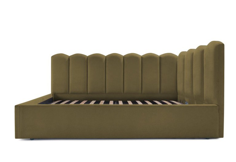 Pat Tapițat Princess de colț, cu somieră rabatabilă și ladă depozitare