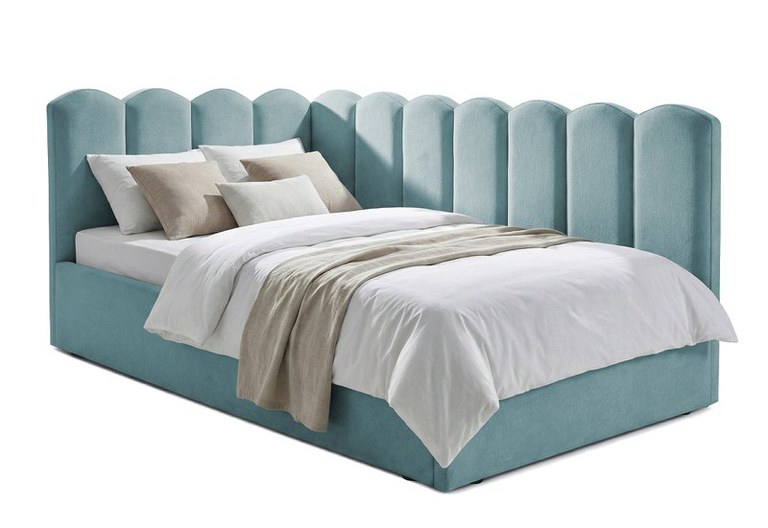 Pat Tapițat Princess de colț, cu somieră rabatabilă și ladă depozitare