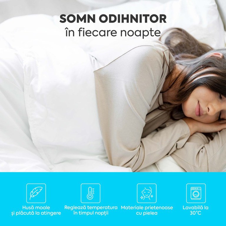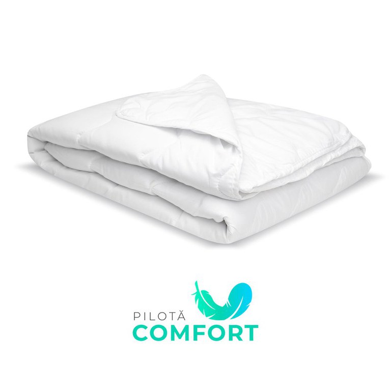 SOMN ODIHNITOR ÎN FIECARE NOAPTE Pilota Comfort este mai subțire, conferind un nivel scăzut de căldură și tu te poți bucura de un somn odihnitor în fiecare noapte în special în anotimpul cald. Este recomandată și celor care sunt mai puțin friguroși în anotimpul rece, astfel că pilota poate fi utilizată cu succes în orice anotimp. Datorită umpluturii de microfibră, pilota permite corpului să respire și păstrează o temperatură constantă pe parcursul întregii nopți. MATERIALE PRIETENOASE CU PIELEA TA Husa pilotei este din material respirabil și delicat cu pielea. Umplutura pilotei este din microfibră de 130g/m2 ce își păstrează volumul în timp, asigurând un nivel optim de respirabilitate. În plus, suprafața pilotei este țesută în linii ondulate pentru a asigura distribuirea optimă și rezistența în timp a microfibrelor. REGLEAZĂ TEMPERATURA Datorită microfibrelor, temperatura este reglată foarte bine și poți folosi cu succes pilota atât în lunile mai friguroase cât și pe timpul verii. Țesătura husei permite aerului să circule și asigură un mediu uscat pentru somn pe tot parcursul anului. DESIGN ELEGANT ȘI ÎNTREȚINERE UȘOARĂ Pilota Comfort este lavabilă la 30 de grade, iar husa are un design elegant datorită bordurii bleumarin ce înconjoară pilota. Croiala în linii ondulate menține umplutura la locul ei, iar tu te vei bucura de pilotă pentru mult timp. Pilota trebuie utilizată întotdeauna cu lenjerie (acoperită cu un cearșaf pentru pilotă), aceasta având rol de protecție și de reducere a numărului de spălări. RECOMANDĂRI DE UTILIZARE. Pilota trebuie utilizată întotdeauna cu lenjerie (acoperită cu o husă), aceasta având rol de protecție. Acest produs se utilizează în spații închise, într-un climat normal de umiditate și temperatură. Se recomandă aerisirea săptămânală a încăperii și expunerea produselor la aer curat, astfel se previne dezvoltarea mucegaiului și acumularea unei mari concentrații de umiditate în produse. Produsul nu este destinat folosirii în medii umede. Evitați scurgerea de lichide și acumularea de umezeală în produse. Se recomandă curățarea conform informațiilor de pe eticheta atașată, evitați călcarea și uscarea cu fierul de călcat. Specificații Produs: Dimensiuni: 140x200cm Material husă: 100% microfibră Material interior: microfibră HCS 250g/m2