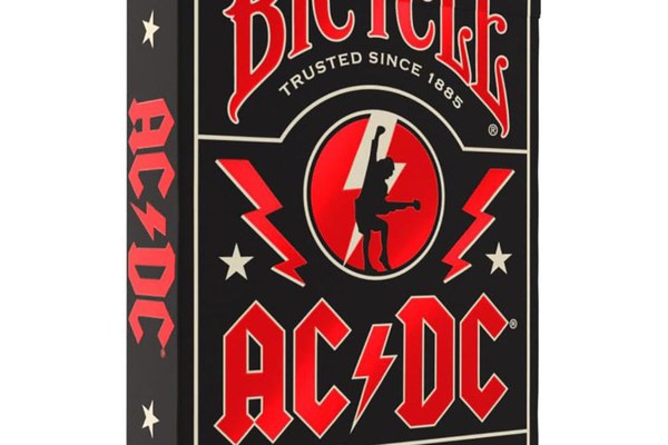 Pentru toti cei care iubesc rock-ul, va prezentam cartile de joc Bicycle AC/DC! Joaca cu un pachet incendiar, unde cartile regale il prezinta pe Angus Young si celebra lui chitara. Fii "Thunderstruck" de cutia cu folie rosie stralucitoare si pregateste-te pentru o runda de carti care duce direct pe Highway to Hell! Fiecare pachet contine 52 carti de joc si 2 jokeri. Material: carton plastifiat. Dimensiuni: 89 x 65 mm.