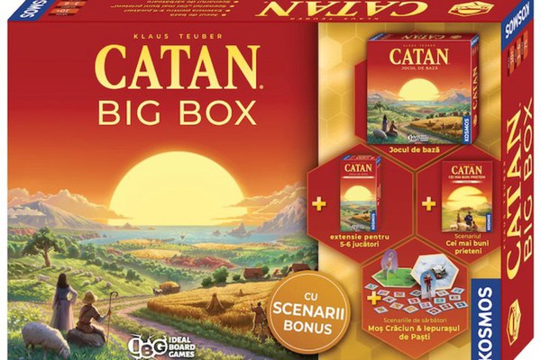 CATAN Big Box 2025 - Editie aniversara de 30 de ani, joc de societate strategic pentru familie Sarbatoreste 30 de ani de la lansarea legendarului joc de societate CATAN cu CATAN Big Box 2025, o editie actualizata care aduce o grafica modernizata si optimizari captivante! Acest set complet este perfect pentru pasionatii de jocuri de strategie, familii si grupuri de prieteni care vor sa exploreze lumea fascinanta a colonizarii insulei Catan.\nDescopera scenarii bonus unice, precum "Cei mai buni prieteni", "Mos Craciun" si "Iepurasul de Paste", unde generozitatea si strategia se impletesc. Ajuta-i pe Mos Craciun si Iepurasul de Paste sa obtina cadouri avantajoase, aducand o nota festiva si distractiva jocului. Toate scenariile sunt concepute pentru 2 pana la 6 jucatori, oferind noi variante pentru a mentine o experienta captivanta. CATAN Big Box 2025 include:\n- Jocul de baza CATAN, un clasic al jocurilor de societate de strategie\n- Extensia pentru 5–6 jucatori, ideala pentru grupuri mari\n- Trei scenarii exclusive: "Cei mai buni prieteni", "Mos Craciun" si "Iepurasul de Paste". Cu milioane de fani in intreaga lume, CATAN este jocul perfect pentru seri de neuitat alaturi de familie sau prieteni. Lasa-te captivat de strategia, negocierea si aventura oferite de acest joc de societate iconic!