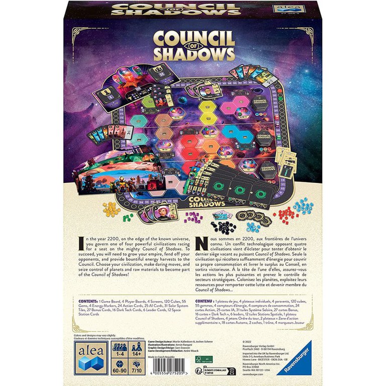 Este anul 2200. Suntem la marginea universului cunoscut si o cursa pentru un loc in puternicul Consiliu al Umbrelor este in plina desfasurare, cu patru civilizatii care lupta pentru admitere. Doar cei care ofera mai multa energie consiliului si se autodepasesc vor avea succes.\n\nIn Council of Shadows, iti asumi rolul uneia dintre aceste patru civilizatii, asiguri cele mai puternice actiuni, preiei controlul asupra zonelor importante si trebuie sa fii primul care face trei salturi cuantice. Asa castigi cursa si devii parte din Consiliul Umbrelor!