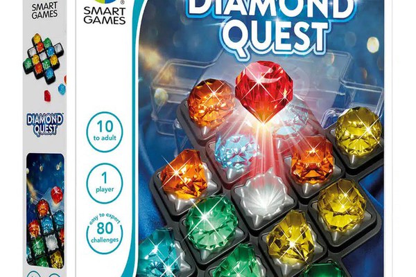 Intrati in mina de diamante SmartGames, dezgropati toate bijuteriile si descoperiti locatia diamantului rosu. Folositi "comoara" de informatii oferite de indiciile fiecarei provocari. Cu cat sapati mai adanc, cu atat mai mult va vor fi testate abilitatile de deductie! Diamond Quest este un joc unic de puzzle cu 80 de provocari, de la usor la expert... Alegeti o provocare. Fiecare provocare ofera indicii despre asezarea unora dintre pietrele pretioase. Combinati indiciile pentru a gasi amplasarea tuturor pietrelor pretioase si pentru a descoperi unde este ascuns diamantul rosu! Este posibil ca pozitia unor piese sa nu fie oferita, dar poate fi intotdeauna dedusa folosind logica. Cele 80 de provocari au cate o singura solutie corecta (le gasiti la sfarsitul brosurii). Spor la joaca!