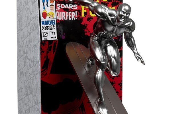 Figurina cu Silver Surfer inspirata de coperta benzilor desenate Fantastic Four #72. Masoara 25 cm si vine insotita de o baza ecologica, o scena pe fundal si de editia retiparita a benzilor desenate Fantastic Four #72. Include un cartonas de colectie cu ilustratii ale personajului pe fata si sinopsisul benzilor desenate pe spate.