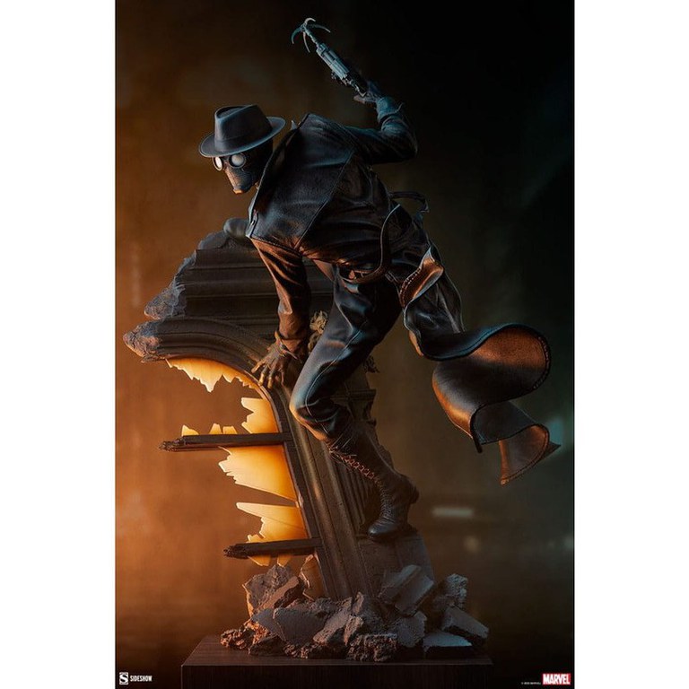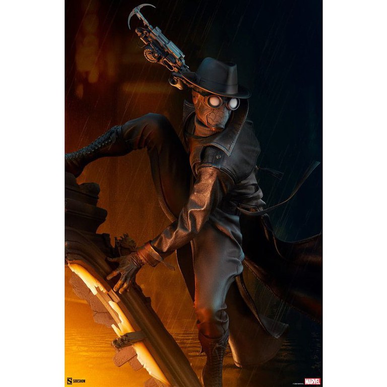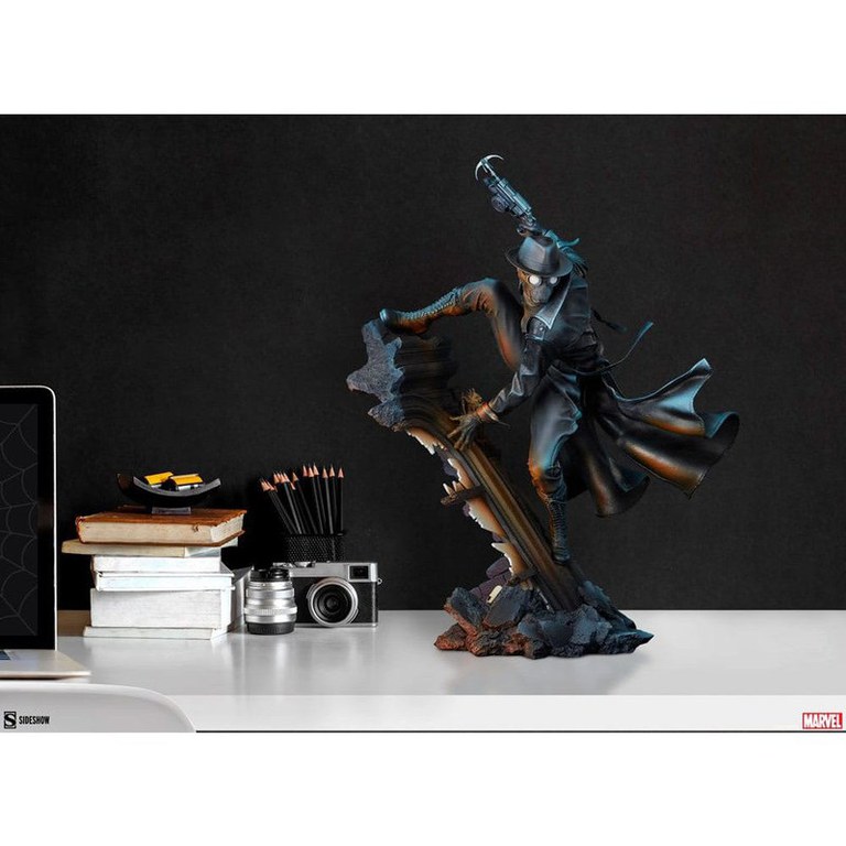 Sideshow va prezinta statueta Spider-Man Noir Premium Format, o colectie misterioasa de la Marvel Comics care cuprinde tot Multiversul. Este o noapte rece si intunecata pe Earth-90214, cunoscut si sub numele de Earth-Noir. Marea Criza Economica a atins orasul New York si super-eroii sunt inexistenti, asta pana cand isi face aparitia Spider-Man. Dimensiuni: 68 x 53 x 37 cm.