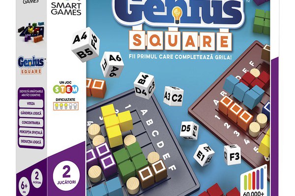 Genius Square este un joc de logica si strategie rapid, destinat atat copiilor cat si adultilor. Jocul include o tabla impartita in grile, pioni de diferite forme si sase zaruri. Scopul este sa completezi tabla de joc plasand toate piesele tale in grila, dupa ce au fost stabilite coordonatele cu ajutorul zarurilor. Este recunoscut pentru beneficiile pe care le aduce dezvoltarii cognitive, stimuland gandirea logica si capacitatea de rezolvare rapida a problemelor. Ce este si mai interesant este ca, datorita modului in care functioneaza zarurile si grila, fiecare runda are o solutie unica, asigurand rejucabilitatea si o experienta variata.