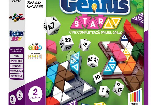 Genius Star este un joc de logica captivant si provocator, similar cu Genius Square, dar cu un nivel de dificultate mai ridicat. Jocul consta dintr-o tabla in forma de stea cu mai multe colturi si piese de tip polinom, pe care jucatorii trebuie sa le plaseze pe tabla intr-un mod strategic. Spre deosebire de Genius Square, forma neregulata a tabelei si piesele mai complexe fac ca Genius Star sa fie mai dificil si sa solicite o gandire mai avansata si creativa. Este un joc care stimuleaza abilitatile cognitive, dezvoltarea logicii spatiale si ofera o modalitate distractiva de a concura sau de a te provoca singur.