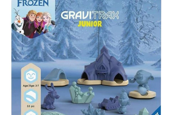 GraviTrax Junior este un sistem interactiv de trasee cu bile pentru baieti si fete cu varste intre 3 si 7 ani. Cu GraviTrax Junior, copiii isi construiesc propriile trasee si creeaza lumi tematice prin decorare creativa intr-un mod jucaus. Extensia GraviTrax Junior Frozen este ideala pentru sistemul de trasee cu bile; in combinatie cu un set de start GraviTrax Junior, copiii patrund imediat in lumea Reginei Ghetii. Prin diversele figurine de joc, copiii descopera lumea Annei si a Elsei in timp ce se joaca. Numar piese: 33.