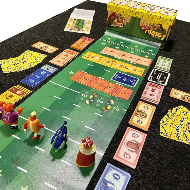 Hot Streak este un joc pentru pariorii ghinionisti carora le place sa mizeze si sa tipe la concurenti, care in acest caz se intampla sa fie mascote care pot (sau nu) sa continue sa alerge in directia corecta. La inceputul jocului, pregateste pachetul de curse cu o carte pentru fiecare mascota si un numar de carti aleatorii in functie de numarul de jucatori. Dezvaluie aceste carti tuturor jucatorilor, dupa care acestia aleg un bilet de pariere dintre cele afisate, apoi, in ordine inversa, aleg un al doilea pariu. Pentru fiecare pariu, poti juca la sigur sau il poti intoarce pe partea riscanta, care ar putea plati mai mult sau te-ar putea costa bani daca pierzi. Dupa pariere, fiecare jucator alege una dintre cele trei carti din mana sa pentru a o adauga in secret la pachetul de curse. Amesteca pachetul, elimina trei carti, apoi dezvaluie cartile una cate una din pachet, mutand mascotele de-a lungul pistei, acestea uneori virand pe o alta banda si rasturnand un alt concurent, alteori intorcandu-se, alteori miscandu-se toate deodata si alteori mergand pur si simplu inapoi! Daca un concurent iese de pe pista sau este rasturnat, acesta este descalificat. Daca este necesar, amesteca toate cartile din pachet, elimina din nou trei carti si continua cursa pana cand toate cele patru locuri de pe podium sunt ocupate. Plateste pariurile pe baza acestor rezultate.
