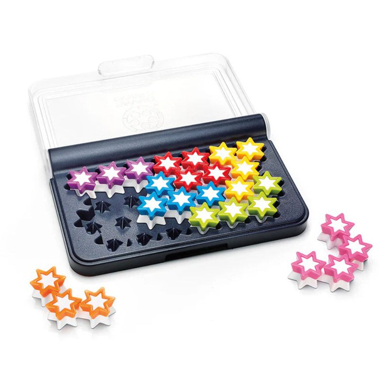 IQ Stars este un joc de logica compact si portabil, din seria Smart Games, de inalta calitate, care vine intr-o cutie cu capac transparent si are 120 de provocari logice cu dificultati crescatoare, recomandat pentru varstele 6+, care testeaza si dezvolta abilitatile cognitive ale jucatorilor. Pot incapea toate stelele pe grila? Sunt abilitatile creierului tau incredibile? Puteti plasa cele 7 piese stelare ale puzzle-ului pe grila? Regulament si in limba romana.