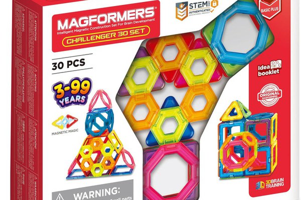Jocul magnetic de constructie Magformers - 30 piese este compus din 8 mini-hexagoane, 8 mini-octogoane alaturi de 10 patrate si patru triunghiuri magnetice, in culori stralucitoare de curcubeu. Este setul perfect care va introduce in lumea magica, magnetica creata de Magformers, dar este si un supliment minunat pentru oricare alt set din colectie.\n\nProvocarea suplimentara consta in testarea capacitatilor copiilor, deoarece doar anumite parti ale componentelor contin magneti! Toate piesele sunt 100% compatibile cu alte seturi Magformers.