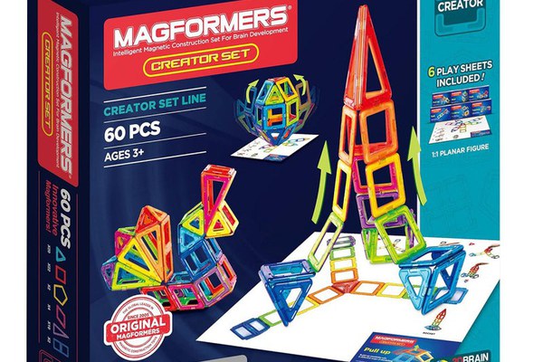 Jocul magnetic de constructie Magformers - 60 piese include 6 forme magnetice diferite in culori speciale: triunghi, patrat, romb, trapez, triunghi isoscel, dreptunghi. Este setul perfect care va introduce in lumea magica, magnetica creata de Magformers, dar este si un supliment minunat pentru oricare alt set din colectie.\n\nProvocarea suplimentara consta in testarea capacitatilor copiilor, deoarece doar anumite parti ale componentelor contin magneti! Toate piesele sunt 100% compatibile cu alte seturi Magformers.