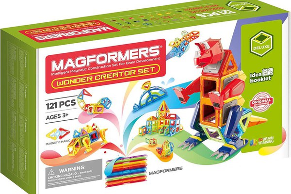 Jocul magnetic de constructie Magformers - 121 piese este compus din 12 forme diferite magnetice (88 in total) plus multe accesorii de monstri. Include diverse forme de cap si parti corporale de la Mega Monster, suficiente pentru a crea trei monstri Kaiju diferiti in acelasi timp! Este setul perfect care va introduce in lumea magica, magnetica creata de Magformers, dar este si un supliment minunat pentru oricare alt set din colectie.\n\nProvocarea suplimentara consta in testarea capacitatilor copiilor, deoarece doar anumite parti ale componentelor contin magneti! Toate piesele sunt 100% compatibile cu alte seturi Magformers.