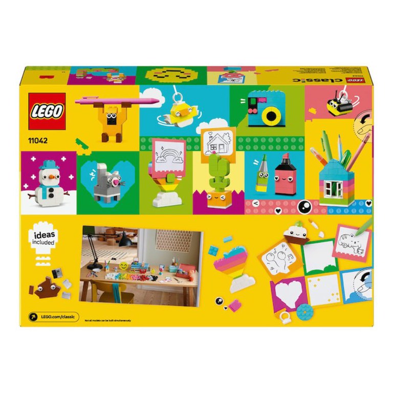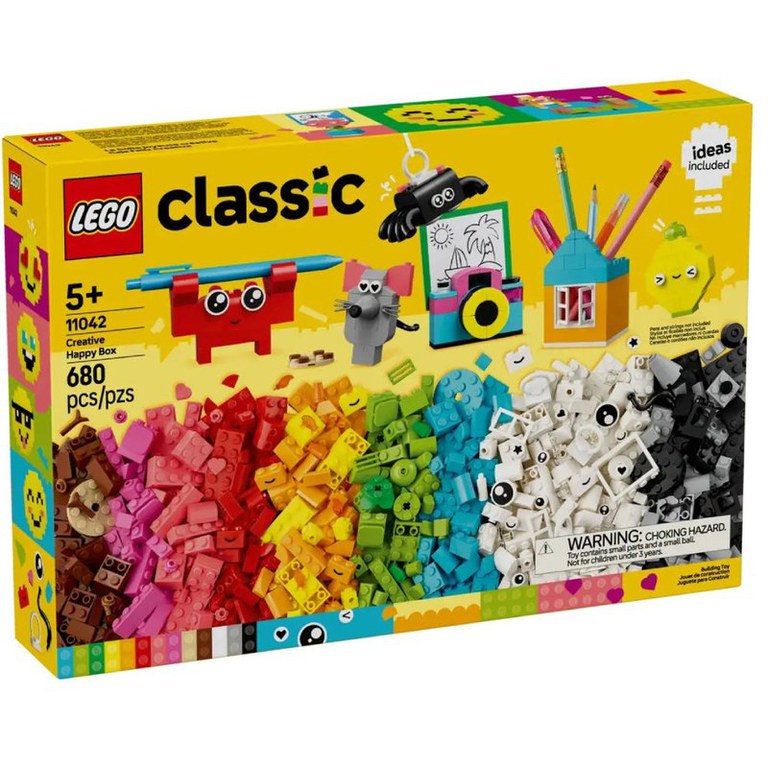 Ofera micilor constructori cel mai bun inceput cu LEGO Classic Cutia creativitatii si veseliei (11042). Cu 680 de caramizi colorate si elemente speciale, plus un ghid de sugestii, construitul vesel nu se opreste niciodata. Cutia creativitatii si veseliei include sugestii pentru 10 modele rapid de construit, fiecare conceput pentru a aduce bucurie. Copiii pot reconstrui aceste modele in 12 jucarii noi, apoi le pot personaliza si mai mult obtinand nenumarate creatii proprii, astfel incat sa-si poata decora camera cu obiecte atractive si functionale pe care le-au construit ei insisi. Paianjenul, albina si pasarea au elemente de agatare pentru etalare. Modelele crab, maimuta si casa pot fi suporturi de depozitare pentru obiecte mici, cum ar fi un creion sau o periuta de dinti. Modelele floare, aparat foto, marker, inima si cactus includ un element de prindere care permite copiilor sa le ataseze un biletel, un cartonas sau o imagine (hartia colorata este inclusa in set). Alte modele includ o pisica, un soarece, o lamaie, un vierme si o fata zambitoare. Raspandeste putina fericire cu acest mod distractiv si practic de a inspira creativitatea copiilor. Numar piese: 680.