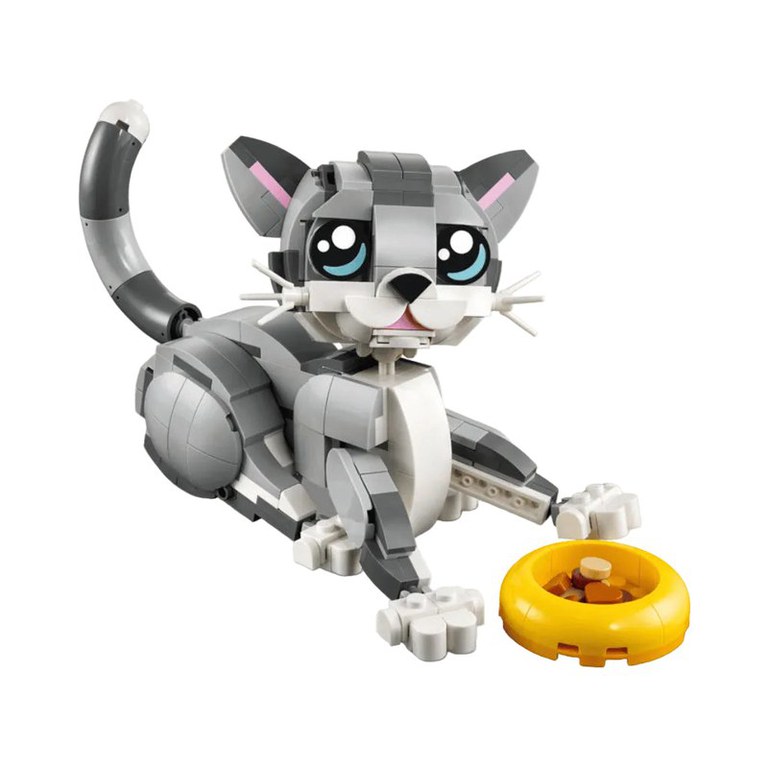 Incanta iubitorii de animale de companie de peste 8 ani cu adorabilul set de constructie LEGO Creator 3 in 1 Pisica jucausa (31163). Setul cu animale de companie include o pisica adorabila cu cap, urechi, coada si picioare articulate si accesorii precum un bol cu mancare, un soricel de jucarie si un ghem de ata, astfel incat copiii sa poata interpreta povesti pline de distractie. Fetele si baietii pot construi 3 animale LEGO diferite cu aceleasi caramizi: o pisica articulata care poate sta asezata, poate sta in picioare si poate sari, un caine adorabil si articulat cu un os, si un porumbel cu firimituri de paine. Toate cele 3 scene fac din acest set un cadou LEGO grozav pe care copiii il pot expune si cu care se pot bucura de joaca fantezista. Numar piese: 407.