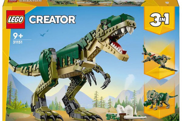 Copiii de 9+ ani se pot intoarce in timp pentru a interpreta scene uimitoare de actiune cu jucaria cu dinozaur T. Rex (31151). Jucaria Tyrannosaurus Rex este articulata, astfel incat cei mici ii pot misca capul, picioarele, coada, maxilarul, picioarele, bratele si chiar degetele de la picioare si calcaiele, creand diferite posturi. Setul include si un cuib care contine 2 elemente mici reprezentand oua de dinozaur. Impreuna, dinozaurul si cuibul alcatuiesc un exponat impresionant. Acest set de constructie LEGO cu dinozauri ii transporta pe copii intr-o lume plina de posibilitati palpitante de joaca, dandu-le ocazia sa construiasca 3 dinozauri diferiti cu aceleasi caramizi. Copiii pot crea un T. rex articulat, pe care il pot reconstrui intr-un triceratops infricosator cu 3 coarne sau intr-un pterodactil cu aripi mari si mobile. Kiturile de constructie LEGO Creator 3 in 1 sunt cadouri grozave de zi de nastere sau de sarbatori, oferind copiilor ocazia sa creeze 3 modele diferite in fiecare cutie. Seturile 3 in 1 ofera o gama de modele din caramizi care raspunde celor mai mari pasiuni ale celor mici, incluzand vehiculele super rapide, animalele uimitoare si scenele urbane detaliate. Numar piese: 626.