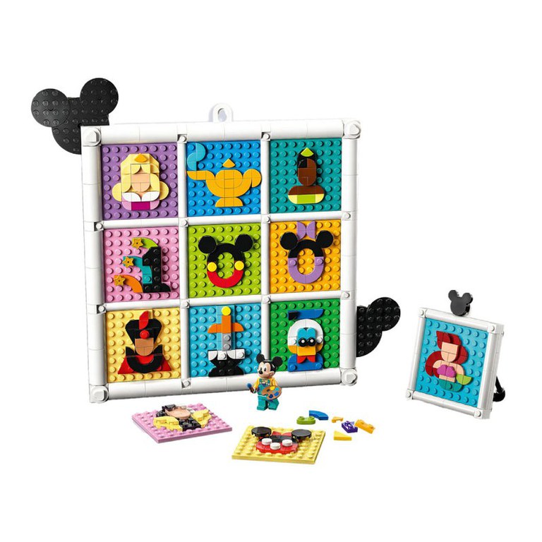 Bucura fanii si copiii de 6+ ani si stimuleaza creativitatea la decorare cu setul LEGO Disney 100 de ani de figuri emblematice de animatie Disney (43221). Setul include 12 ilustratii 8x8, o rama foto si o agatatoare, precum si o multime de placute pentru a construi pana la 12 modele, plus o minifigurina exclusiva reprezentand personajul Disney Mickey Mouse si instructiuni de constructie cu sugestii suplimentare. Numar piese: 1022.