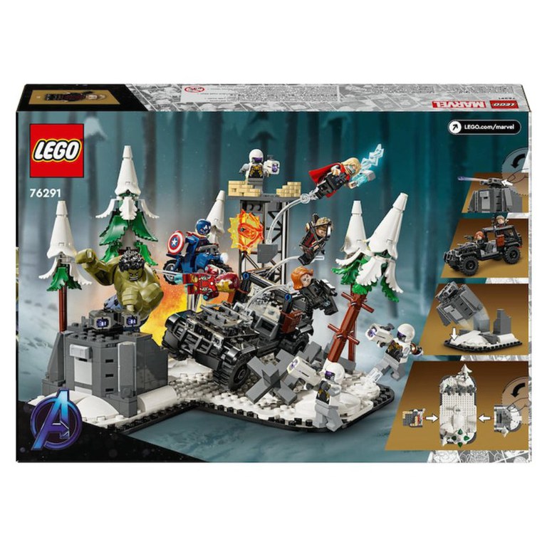Jucaria construibila Razbunatorii reuniti: Sub semnul lui Ultron (76291) este un set LEGO de colectie si aventura cu supereroi, plin cu scene de actiune autentica inspirate din Razbunatorii. Cu emblematicele personaje Marvel si un megadesign modular, acesta este un cadou ideal pentru fanii de 10+ ani ai seturilor cu supereroi, ai minifigurinelor LEGO Marvel si ai constructiei de modele. Setul se bazeaza pe marea scena de lupta din filmul de succes Marvel Studios Razbunatorii: Sub semnul lui Ultron. in jucaria de constructie adaptabila sunt incluse 5 minifigurine Razbunatori – Hawkeye, Vaduva neagra, Capitanul America, Iron Man si Thor – o figurina mare Hulk si 3 minifigurine soldati Hydra. Cele 5 module care compun setul pot fi configurate pentru posibilitati nelimitate de joaca sau combinate pentru a crea un exponat impresionant. Setul include o varietate de arme si accesorii pentru a inspira joaca fantezista pe roluri, precum si un vehicul off-road pus in miscare prin impingere. Pentru distractie digitala suplimentara, aplicatia intuitiva LEGO Builder permite copiilor sa apropie, sa roteasca modelele in 3D, sa salveze seturi si sa-si urmareasca progresul pe masura ce construiesc. Numar piese: 613.
