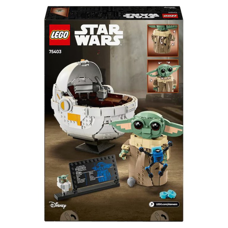 Ofera copiilor ocazia sa-si arate dragostea pentru Grogu cu aceasta figurina construibila LEGO Star Wars Grogu cu landou planor (75403). Un cadou adorabil pentru baieti, fete si fanii de 10+ ani ai serialului Razboiul stelelor: Mandalorianul, acest model de constructie si etalare reprezinta o decoratiune atractiva si vesela pentru camera. Grogu are brate actionate de discuri si cap si urechi articulate si poate fi etalat in interiorul sau in afara landoului planor. Setul include si o broasca Sorgan din caramizi (gustarea preferata a lui Grogu!), o maneta si o prajitura pe care Grogu sa le tina in mana. Modelul principal din acest set de constructie si de colectie Star Wars este insotit de o figurina LEGO Grogu de dimensiuni standard intr-un mic landou planor construibil, precum si de o placuta cu informatii care completeaza exponatul vesel. Numar piese: 1048.