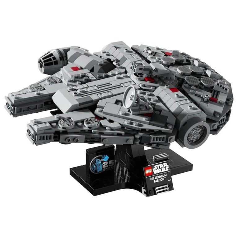 Clasica saga Star Wars continua in casa ta cu acest model de colectie LEGO Star Wars al navei stelare Millennium Falcon (75375), conceput pentru constructie si etalare. Gaseste-ti concentrarea si atentia constienta de Jedi pentru a recrea detalii autentice ale acestei nave stelare emblematice, asa cum apare ea in Razboiul stelelor: O noua speranta. Etaleaza-ti creatia pe un stativ construibil, proiectat pentru a expune Millennium Falcon intr-un unghi dinamic, ca si cand ar zbura. Adauga placuta cu nume si o caramida ce marcheaza a 25-a aniversare LEGO Star Wars pentru a definitiva o piesa de decor care va trezi multe amintiri nostalgice. Acest vehicul Star Wars construibil face parte din Colectia de nave stelare LEGO Star Wars de dimensiuni medii. Poate fi un rasfat pentru tine sau un cadou pentru alti fani si colectionari Star Wars. Acest set LEGO Star Wars unic pentru adulti ofera o provocare complexa de constructie creativa. imbunatateste-ti experienta cu aplicatia LEGO Builder, in care poti apropia si roti constructiile pe ecran in 3D, iti poti monitoriza progresul si poti salva toate seturile intr-un singur loc. Numar piese: 921.