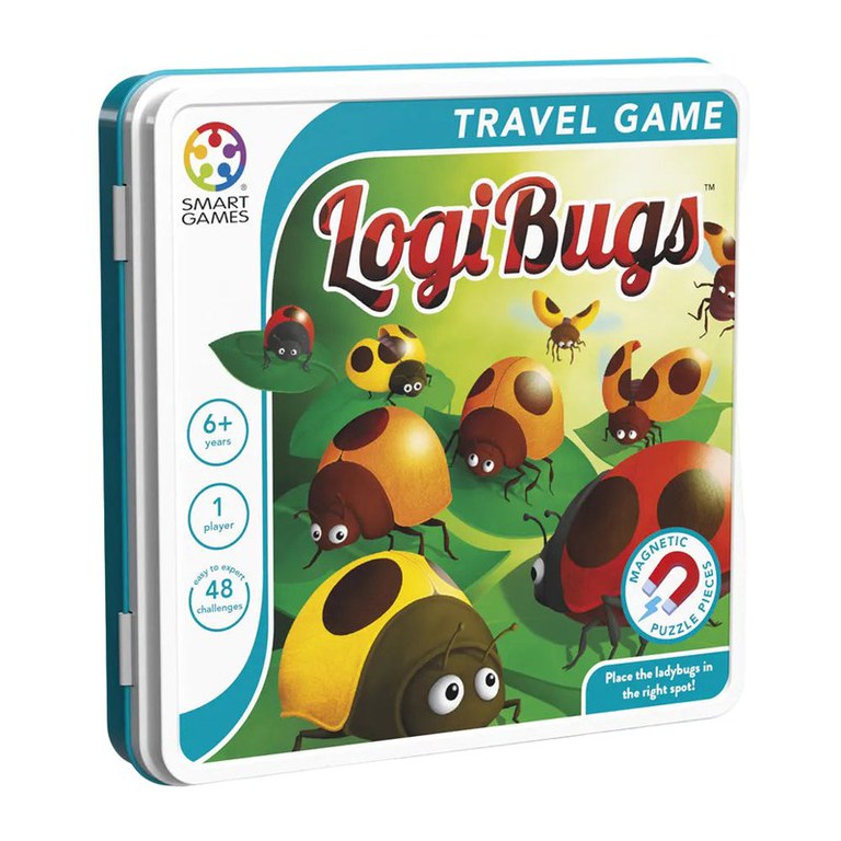 Logibugs este joc de calatorie distractiv si captivant, din seria Smart Games, de calitate, care vine intr-o cutie metalica robusta si are 48 de provocari logice cu dificultati crescatoare, recomandat pentru varstele 6+, care testeaza si dezvolta abilitatile cognitive ale jucatorilor. Joc de calatorie magnetic 3D care te va provoca sa-ti folosesti logica si abilitatile de deductie pentru a plasa cele 3 familii de buburuze pe tabla de joc in ordinea corecta. Urmeaza indiciile numerice si bazate pe culori pentru a gasi locurile potrivite! Ai fost deja muscat de LogiBug?