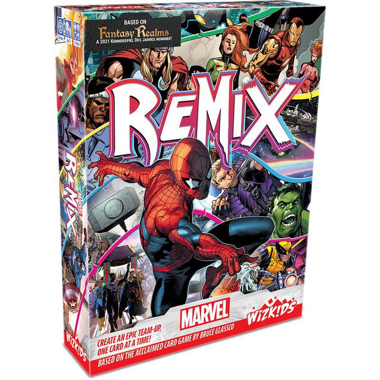 In Marvel: Remix, jucatorii formeaza o echipa de eroi si aliati pentru a lupta impotriva raufacatorilor infami. Acestora li se imparte o mana de sapte carti care vor contine personaje, obiecte sau locatii din intregul Univers Marvel. Apoi, jucatorii isi pot inarma personajele cu echipamente sau abilitati puternice si isi folosesc cartile pentru a realiza combinatii epice. Castiga jucatorul care are cele mai multe puncte la sfarsitul jocului. Contine 61 de carti Remix, 18 carti cu raufacatori, un carnetel de scor si un set de reguli.