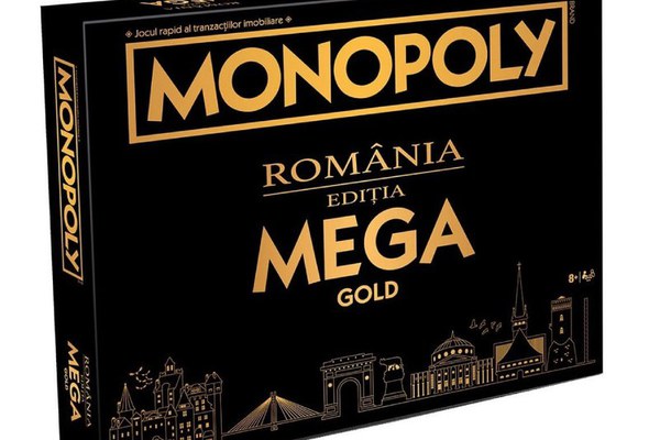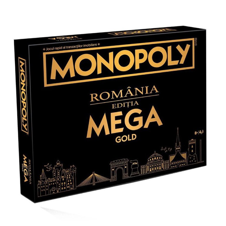 Descopera Monopoly - Romania - Editia Mega Gold ce iti va dezvalui o noua metoda de a cuceri si mai multe proprietati din intreaga tara! Datorita noii editii, vei putea cumpara mai multe cladiri si vei gestiona mai multi bani. Exploreaza noile eventuri de pe tabla de joc Mega Gold! Aceasta aduce 12 spatii suplimentare, dar si 8 orase noi, fiecare adaugat la un grup de aceeasi culoare. Plimba-te de la Craiova la Timisoara si tocmai pana in Cluj-Napoca! Crezi ca vei ajunge sa cumperi si ultimul spatiu de pe tabla de joc? Calea Victoriei din Bucuresti te asteapta!