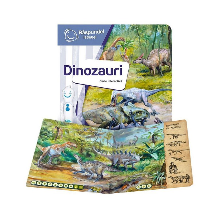 Descopera lumea fascinanta a dinozaurilor care au trait pe Pamant cu milioane de ani in urma. In aceasta carte plina de desene fermecatoare vei gasi informatii despre vremurile preistorice. Vei invata despre evolutia dinozaurilor si a altor creaturi preistorice, de la aparitia pana la disparitia acestora, cauzata de coliziunea unui asteroid urias cu planeta Pamant. Aceasta carte se bazeaza pe ultimele descoperiri in stiinta si ii va fascina atat pe tinerii exploratori, cat si pe aventurierii adulti. Pachetul contine: - Creionul electronic Albi\n- Cartea "Dinozauri"\n- Manual de utilizare pentru creionul electronic Albi\n- Incarcator\n- Cablu USB.