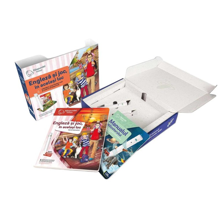 "Raspundel Istetel" este un concept educational unic, prin intermediul caruia copiii pot invata o multime de informatii interesante si utile intr-un mod amuzant si atractiv. Aceasta carte este perfecta pentru a invata limba engleza daca sunteti incepator sau intermediar. In mod distractiv, va veti mari vocabularul si veti invata cum sa pronuntati in mod corect cuvintele in limba engleza si propozitiile simple. Cartea este narata de vorbitori nativi dar include si traducerea in limba romana. Creionul electronic vorbitor Albi 2.0 poate citi carti, poate rezolva un test impreuna cu tine sau poate sa redea cantece ca un MP3 player. Acesta vine echipat cu un card de memorie de 32GB si dispune de functia Bluetooth. Aceasta functie va ajuta sa conectati creionul electronic la boxe portabile sau casti wireless. Jocul cu creionul electronic vorbitor Albi 2.0 este o distractie ce nu se termina niciodata; el poate citi texte, reda cantece, poate emite sunete reale (ragetul leilor, cantecul pasarilor, sunetele vehiculelor etc.). Pachet de baza care include creion si carte.