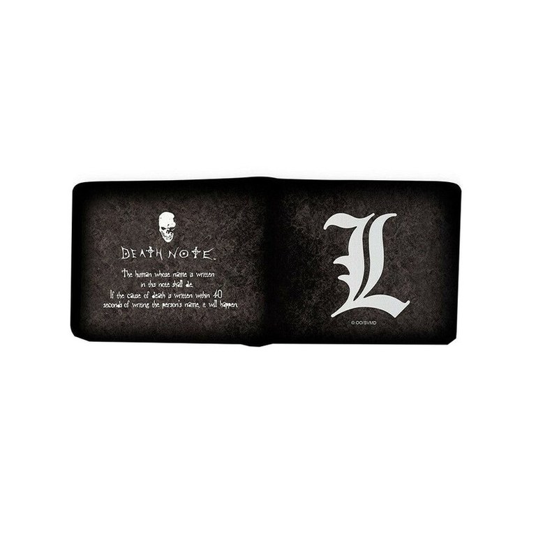 Portofel din piele ecologica inspirat din fascinantul univers manga Death Note, care vine sa va pastreze in siguranta banii si cardurile. Dimensiuni 9,5 cm x 11 cm.
