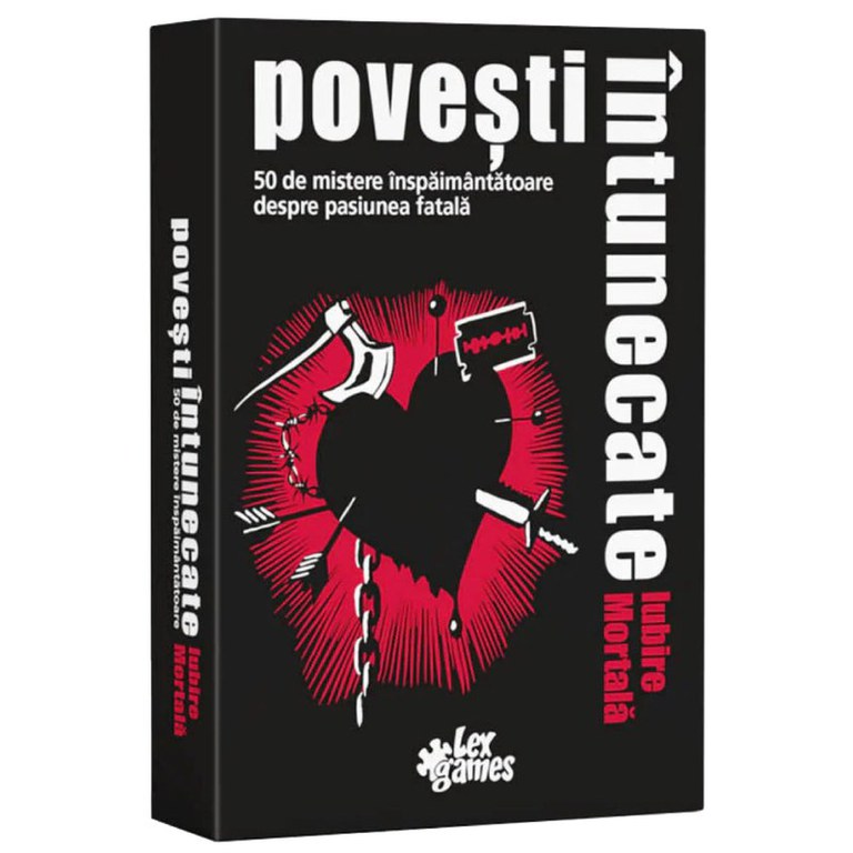 "Povesti Intunecate: Iubire Mortala" este un joc de petrecere cu 50 de mistere care exploreaza partea intunecata a pasiunii. Fiecare poveste te poarta prin intrigi pasionale, gelozii fatale si relatii care se termina in moduri socante si neasteptate. Este un joc care combina misterul cu intensitatea emotiilor umane.