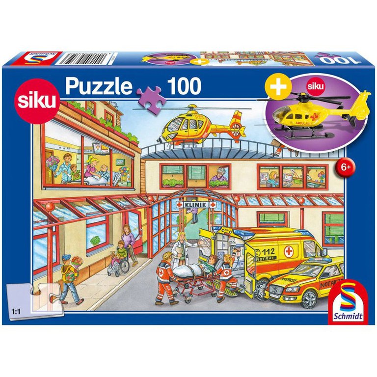 Puzzle Schmidt: Elicopter de salvare contine 100 de piese de puzzle + cadou o macheta elicopter de salvare SIKU. Salvarea aeriana este o aeronava echipata in conformitate cu prevederile legale in vigoare si destinata unor interventii aero-medicale de urgenta, necesare salvarii pacientilor aflati in stare critica si care necesita o interventie rapida si de inalta competenta. Schmidt este o marca germana de puzzle-uri calitative, cu piese groase si cu varietate de forme, cutii robuste si cu ilustratii de calitate superioara. Numar piese: 100. Dimensiuni puzzle: 36 × 24 cm.