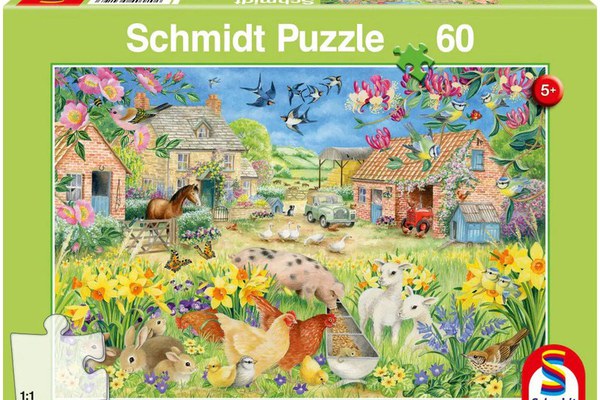 Puzzle Schmidt: La tara contine 60 de piese. Acest puzzle este atat de gingas si dragalas cu animalute de la tara ilustrate intr-un design fin si placut. Schmidt este o marca germana de puzzle-uri calitative, cu piese groase si cu varietate de forme, cutii robuste si cu ilustratii de calitate superioara. Numar piese: 60. Dimensiuni puzzle: 36 × 24 cm.