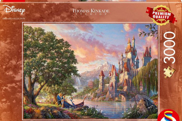 Caracteristici: - Puzzle Schmidt de sase stele, calitate premium, 3.000 de piese.\n- Pictorul luminii, Thomas Kinkade surprinde magia atemporala a acestei povesti clasice Disney.\n- Piese perfecte, variate, extra groase si cu margini netede.\n- Un cadou perfect pentru orice iubitor de puzzle sau fan Disney cu varsta de 12+ ani.\n- Puzzle-ul finalizat masoara aproximativ 118 x 84 cm.
