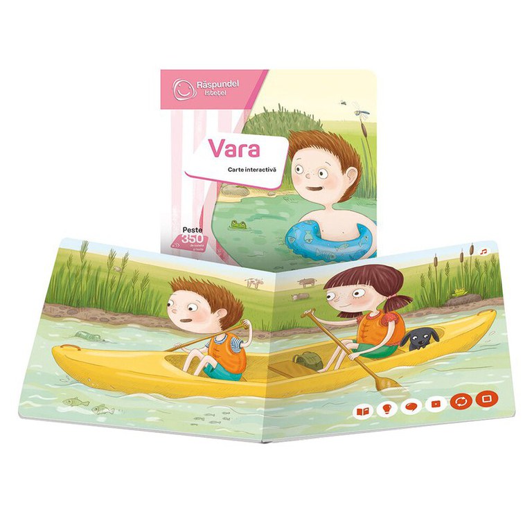 A venit vara si odata cu ea a sosit si vacanta. Unde si-o vor petrece oare Ionut si Maria? Cu siguranta nu vor sta acasa. Vor merge sa inoate in lac sau vor merge cu caiacul pe rau. Haideti sa aflam ce li se intampla in timp ce pregatesc focul de tabara. Va veti intalni din nou cu catelul Rex si pisicuta Mia. Si nu va lipsi nici cantecelul de vara.\n Varsta: 2 - 6 ani. Cartea nu include Creionul Electronic Raspundel Istetel, acesta se vinde separat.
