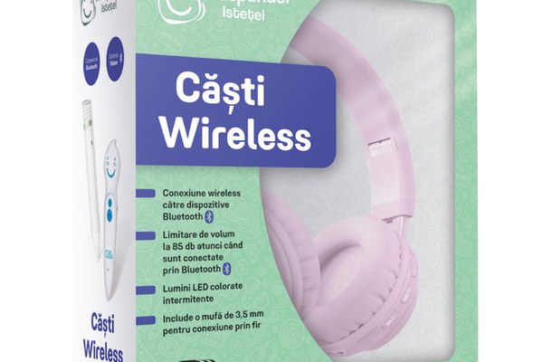 Ia-ti Castile Wireless cu bluetooth si asculta intr-o noua maniera informatiile super interesante si distractive din cartile incluse in colectia Raspundel Istetel. Cu ajutorul functiei KIDS mode puteti limita volumul pentru copii la 85 db, protejandu-le astfel auzul. Functia KIDS mode poate fi utilizata doar atunci cand castile sunt conectate la Bluetooth. Cand conectezi castile cu cablul, aceasta functie devine indisponibila. Castile bluethooth pot fi conectate doar la creionul Albi modelul 2.0 sau la alte dispozitive(PC, smartphone, laptop) care au incorporate un modul BT 5.0. Castile pot fi utilizate pentru 5-10 ore dupa incarcare (in functie de intensitatea utilizarii). Pachetul nu include Creionul Electronic Raspundel Istetel, acesta se vinde separat.