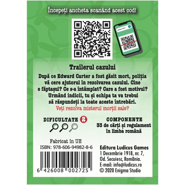 In fiecare caz Q, incerci sa rezolvi un caz misterios cu 32 de indicii, jucatorii dezvaluind cate un indiciu pana cand toate cartile au fost dezvaluite sau decartate. Alege o carte din mana si pune-o pe masa, astfel incat toti jucatorii sa poata citi sau vedea intreaga informatie. Iti recomandam sa citesti cu voce tare toate informatiile distribuite atunci cand le pui pe masa. Daca joci un indiciu, care se intampla sa fie irelevant pentru caz, pierzi puncte la sfarsitul jocului, dar fii atent, unele indicii sunt vitale pentru rezolvarea cazului. Iti poti impartasi si expune teoriile in orice moment, poti vorbi despre cartile pe care ai in mana, dar nu le poti arata celorlalti jucatori, avand voie sa citesti cu voce tare doar cuvintele scrise cu litere aldine sau textul incadrat in interiorul unei imagini. La sfarsitul jocului, cand toate cartile cu indicii au fost dezvaluite sau decartate, trebuie sa verifici cu atentie toate informatiile disponibile si sa pregatesti o teorie a ceea ce s-a intamplat, lucrand impreuna cu ceilalti jucatori. Apoi, vei deschide chestionarul unde vei raspunde la toate intrebarile. In aceasta faza a jocului, poti vorbi liber despre cartile decartate sau despre informatiile pe care ti le amintesti despre ele. Fiecare raspuns corect va adauga doua puncte.