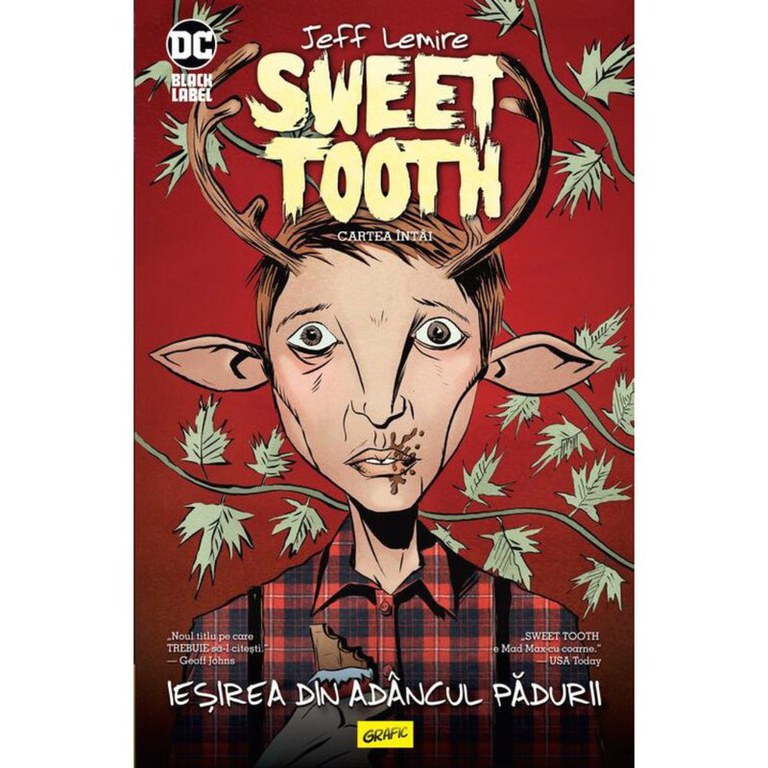 Cu zece ani in urma, Boala s-a raspandit ca focul, ucigand miliarde de oameni, iar singurii copii nascuti de atunci sunt o noua specie de hibrid om-animal. Gus este unul dintre acesti copii, un baiat cu trasaturi de cerb, cu suflet bun si... mare amator de dulciuri. Dar pe capul copiilor-hibrid s-au pus recompense, iar Gus e in mare pericol. Ramas orfan, e cat pe ce sa fie prins de vanatori, dar Jepperd, un barbat misterios, il salveaza in ultima clipa. Vagabondul cu statura de urias ii promite lui Sweet Tooth, asa cum l-a poreclit el pe Gus, ca-l va duce in „Rezervatie", un refugiu pentru hibrizi. Insa drumul pana acolo e presarat cu pericole, iar Sweet Tooth mai are multe de invatat despre cum merg lucrurile in lume. In traditia romanelor "Drumul" de Cormac McCarthy si "Apocalipsa" de Stephen King, artistul si scriitorul Jeff Lemire, nominalizat la premiul Eisner, prezinta o noua si indrazneata viziune postapocaliptica despre soarta umanitatii, valoarea inocentei si prieteniile neasteptate care se pot lega chiar si in cele mai intunecate locuri.