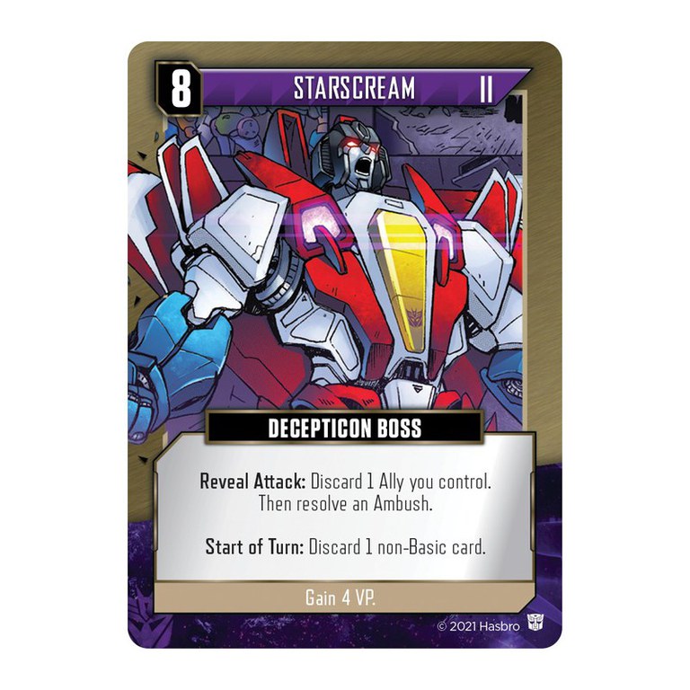 Autobotii sunt roboti razboinici viteji veniti de pe planeta Cybertron. Misiunea lor? Sa-i opreasca pe Decepticoni sa-si puna in aplicare schemele malefice in ceea ce priveste Pamantul. In Transformers Deck-Building Game, preiei rolul unuia dintre puternicii Autoboti. Calatoreste si exploreaza Matricea pe masura ce castigi aliati, gasesti relicve si obtii tehnologie pentru a lupta contra Decepticonilor. Dar fii atent! Pe masura ce pachetul tau creste, Decepticoni mai puternici se vor ridica pentru a te provoca.